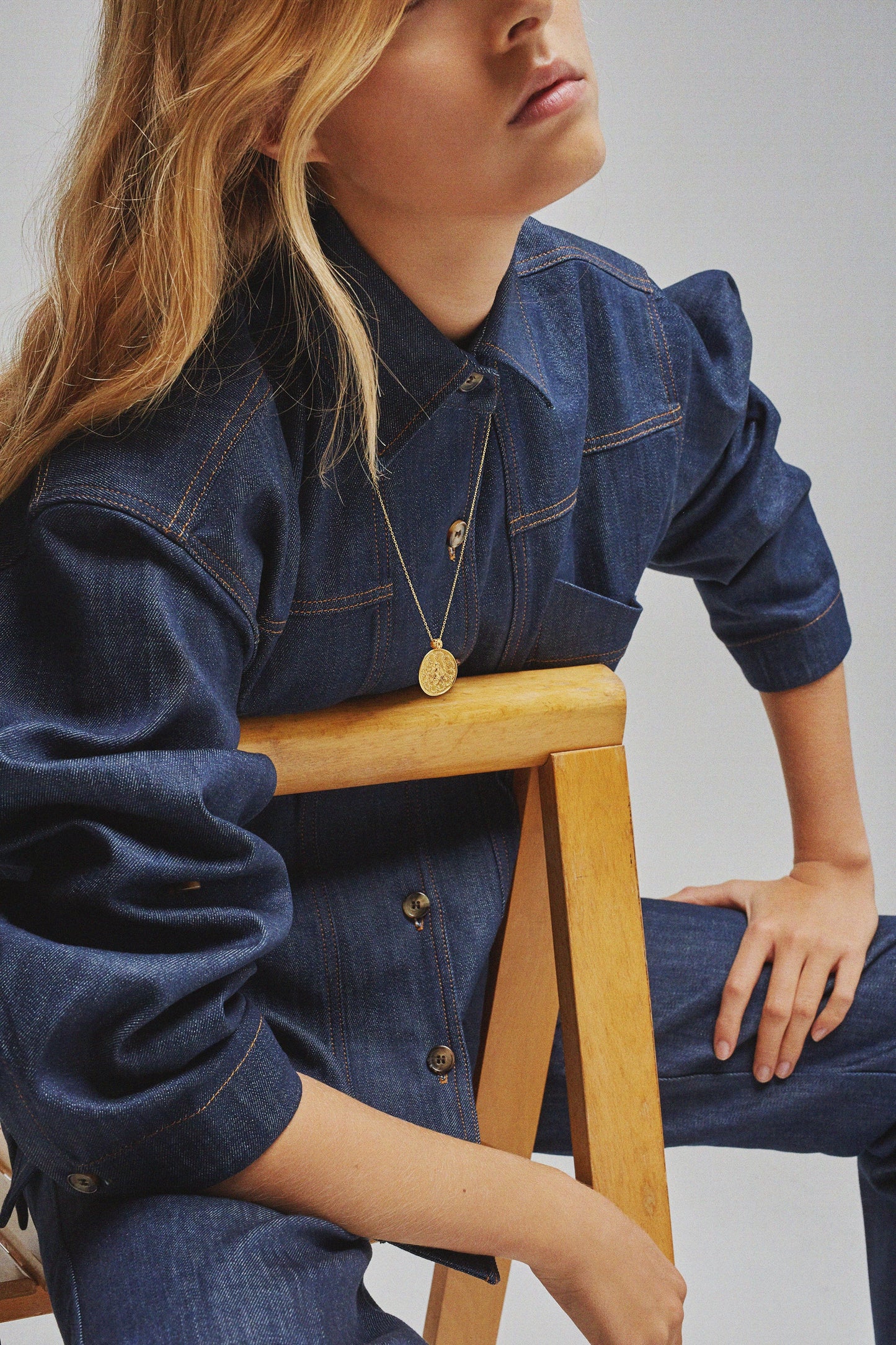 DOMITILLE 3 is a round vermeil pendant decorated with a bee. The motifs inside the medal are engraved by hammering.