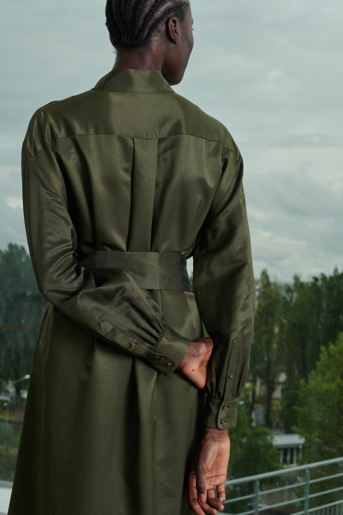 - Buttoned stand-up collar